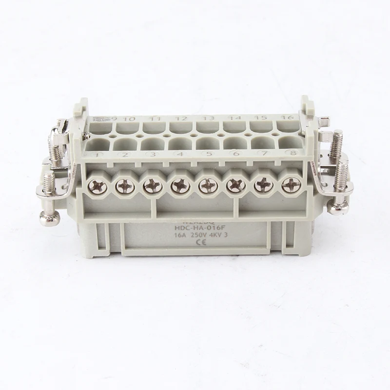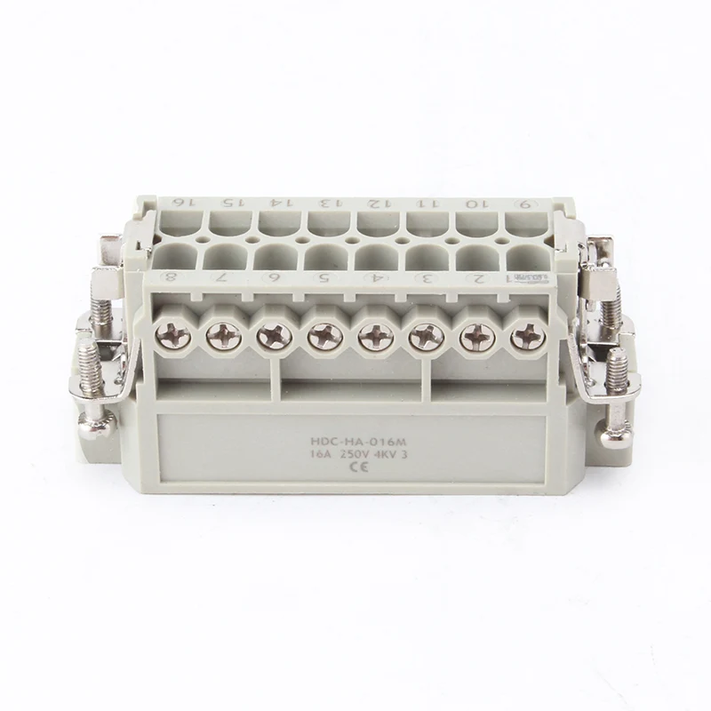 16A 10 دبوس إدراج موصلات الثقيلة هي أجزاء خاملة من الإناث والذكور. HA-016-M وHA-016-F عبارة عن جزء من الذكور والإناث، وهما متطابقان مع بعضهما البعض كمجموعة. إنهم يعملون مع غلاف الألومنيوم H16A. تشكل مكونات الإدخال والغطاء الخارجي معًا منتج موصل كامل. إنها مصنوعة من غلاف الكمبيوتر الشخصي ودبابيس نحاسية مطلية بالفضة. دبابيس مطلية بالفضة تجعلها توصيلات كهربائية جيدة.